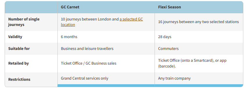What is the difference between Flexi Seasons and Grand Central Carnets?